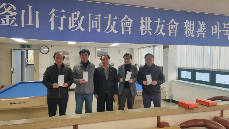 부산광역시행정동우회 취미클럽인 기우회(회장 임주섭)에서 주최한 「2023년도 회원친선 바둑대회」 조별 우승자가 가려졌다. 3급 이상과 4급 이하로 조를 편성 총 15명이 참가하였다. 3급 이상인 A조 우승은 강재열 시우가, 준우승에는 서진립 시우가, 그리고 4급이하 B조 경기 결과, 김은하 시우가 우승, 전형섭 시우가 준우승을 차지하였다. 참가자 전원에게는 점심식사와 더불어 기념품이 전달되었고, 입상자에게는 각각 시상금이 주어졌다. 제법 쌀쌀한 날씨에도 불구하고 시우회관 4층에서 조편성 부터 시작, 토너먼크 경기로 결승전 진출자가 가려졌으며, 결승전은 점심식사를 마치고 재개하여 오후 14:40분경 마무리 되었다. 금회 경기는 지난 2019년도 부산광역시행정동우회 기우회(회장 임주섭)와 부산광역시청 OB팀(회장 배영길) 통합 기념 친선바둑대회를 개최한 이후, 코로나로 인해 중단된지 4년여 만에 치러진 행사로 임주섭 회장은 마무리 인사 말씀에서 다음 대회 때는 더 많은 시우들이 함께하였으면 한다는 바램과 매월 둘째주 월요일 11시에 시우회관으로 와서 옛 동료와 바둑을 즐기기를 바라며 오늘 입상자에게도 축하의 말을 전했다. 오늘 친선 바둑대회에 참가한 시우를 소개하면 A조에 출사표를 낸 임주섭 회장, 강재열, 박철오, 서진립, 유평종, 이준채, 홍윤범 시우, 그리고 B조는 김유덕, 김은하, 김창기, 박병곤, 배명수, 이승호, 전형섭, 주강우 시우가 참가하였다.