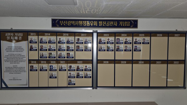 (사)부산광역시행정동우회 발전공헌자 기념탑 운영지침 제정